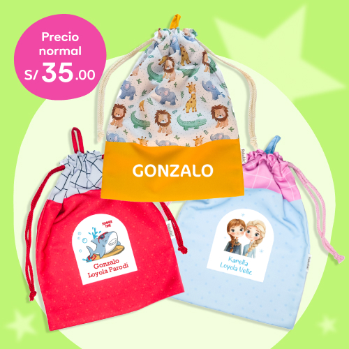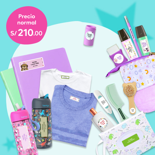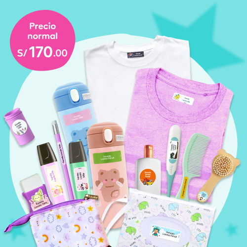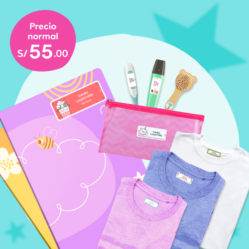 280 etiquetas: 190 etiquetas super resistentes para objetos, 40 etiquetas para ropa y 50 para cuadernos. 140 etiquetas para c/hermano.