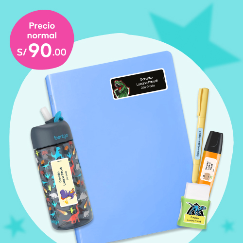 170 etiquetas: 119 etiquetas super resistentes para objetos, 20 etiquetas para ropa, 30 para cuadernos y un mochitag grande.