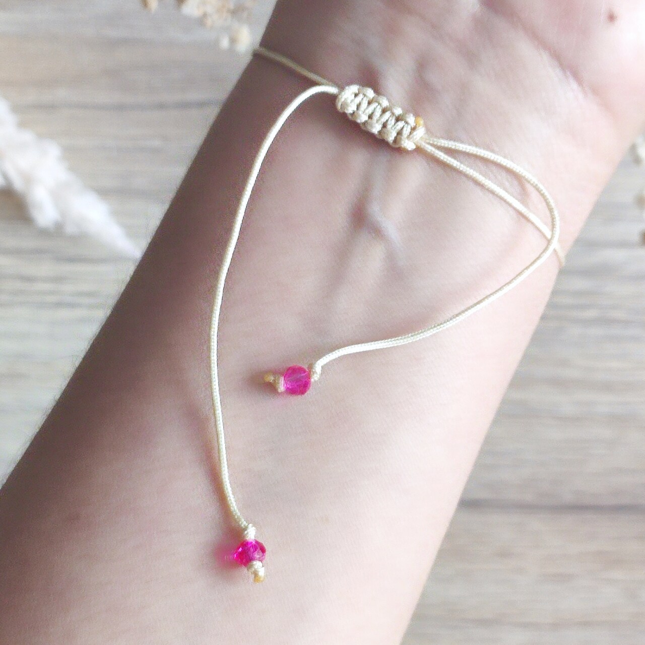 Las pulseras están hechas en macramé y es autoajustable.