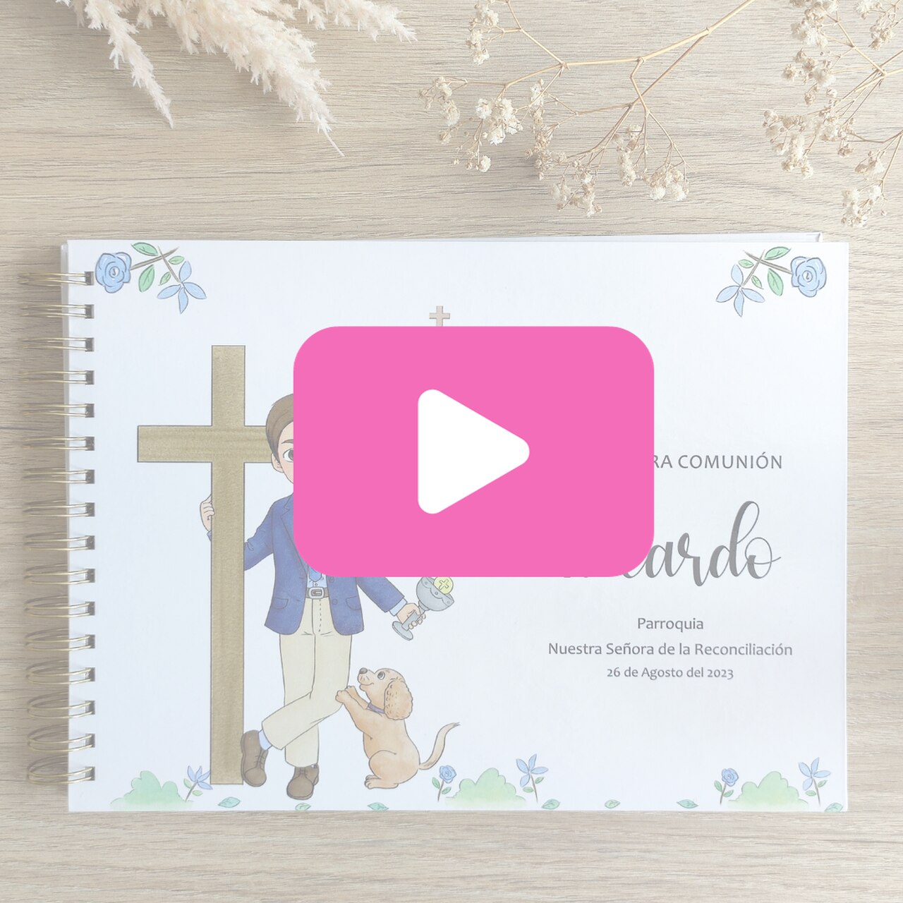 Nuestro libro de fotos firmas comunión es un regalo que deja huella. Personalizamos la portada con el niño o niña y su nombre, añades su nombre y fecha y tendrá un álbum comunión para guardar y consultar el resto de su vida. Las primeras hojas van con todo detalle: ceremonia, celebración.. tú rellenas con los datos. El resto de hojas (cartulina blanca gordita) es para que tus invitados dejen dedicatorias, para pegar recordatorios de comunión de sus amigos, fotos..