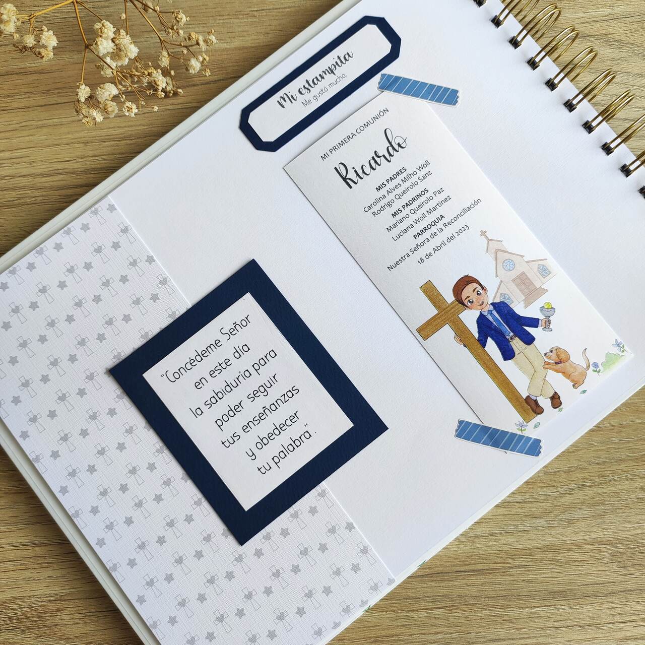 El álbum de fotos y firmas es una forma de capturar todos los momentos importantes de la Primera Comunión. Incluye espacio para fotos y para que los amigos y familiares escriban sus buenos deseos y recuerdos. Es una forma única y especial de recordar este día.