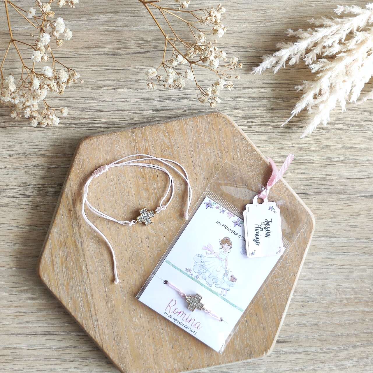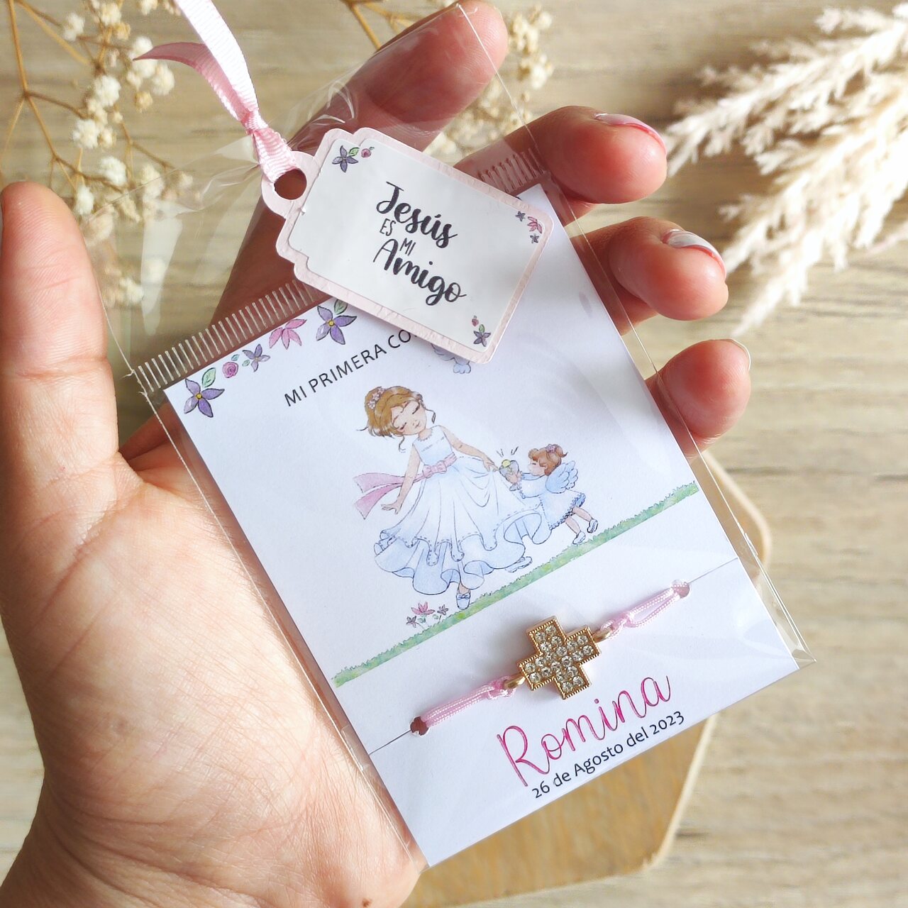 Una pulsera de perlas sería un regalo muy especial para una niña o niño que acaba de recibir su primera comunión. Además, al ser personalizada, se puede grabar el nombre del niño o niña o la fecha de la primera comunión en el empaque, eligiendo el diseño que te guste más para ponerlo en el tag del empaque, lo que lo hace aún más significativo.