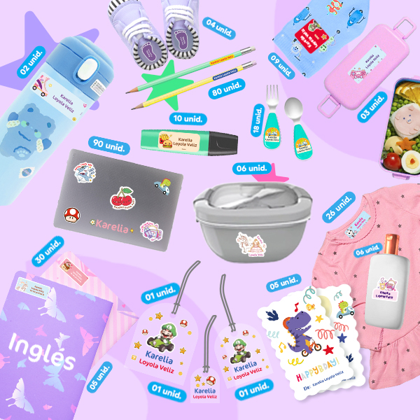 • Protección y Organización: Las etiquetas personalizadas no solo ayudan a evitar pérdidas, sino que también promueven la organización y el cuidado de las pertenencias desde temprana edad. Los niños aprenden a identificar y cuidar sus cosas de manera más efectiva.